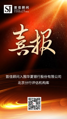 熱烈祝賀北京首佳房地產評估有限公司成功入圍華夏銀行股份有限公司北京分行評估機構庫!