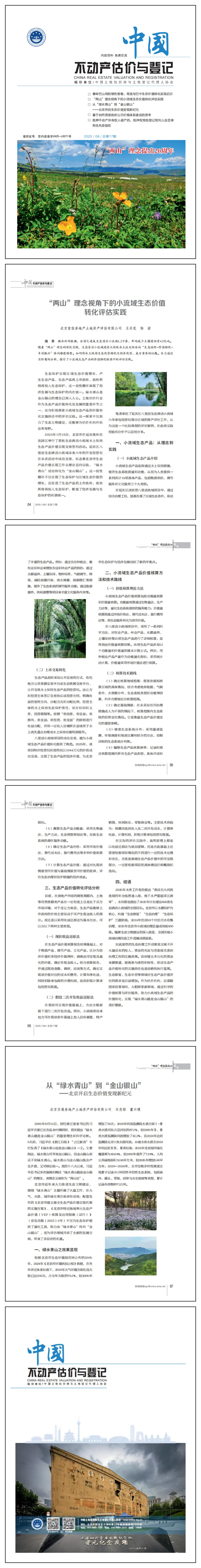 在“兩山”理念深化實(shí)踐與生態(tài)產(chǎn)品價(jià)值實(shí)現(xiàn)的背景下,小流域生態(tài)價(jià)值轉(zhuǎn)化成為推動(dòng)綠色發(fā)展與鄉(xiāng)村振興的重要紐帶。生態(tài)清潔小流域建設(shè)從傳統(tǒng)水土流失防治向“生態(tài)治理-價(jià)值轉(zhuǎn)化-鄉(xiāng)村振興”協(xié)同推進(jìn)轉(zhuǎn)型,如何將水土保持生態(tài)優(yōu)勢(shì)轉(zhuǎn)化為經(jīng)濟(jì)優(yōu)勢(shì),成為當(dāng)下重要的議題。 首佳顧問(wèn)評(píng)估與咨詢顧問(wèn)事業(yè)部副總經(jīng)理王莉花、副總估價(jià)師楊諾在《中國(guó)不動(dòng)產(chǎn)估價(jià)與登記》2025/08/總第17期P27刊發(fā)文章《“兩山”理念視角下的小流域生態(tài)價(jià)值轉(zhuǎn)化評(píng)估實(shí)踐》,通過(guò)實(shí)際案例分析,探討了小流域生態(tài)產(chǎn)品的價(jià)值轉(zhuǎn)化路徑中的評(píng)估實(shí)踐,為生態(tài)價(jià)值轉(zhuǎn)化評(píng)估提供了具有參考性的實(shí)踐經(jīng)驗(yàn)。